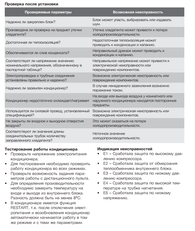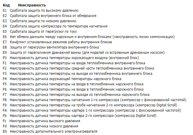 Afin de déterminer le dysfonctionnement, il est nécessaire de vérifier le code d'erreur avec le tableau fourni dans les instructions. Si son élimination ne nécessite qu'un entretien et un nettoyage sans démontage, cela peut être fait indépendamment. Mais en cas de panne complexe, pour l'élimination de laquelle il est nécessaire de retirer l'unité et son capot supérieur, de démonter ses principaux composants ou de remplacer des pièces de rechange, il vaut la peine de contacter des spécialistes. Ils nettoieront les filtres, remplaceront les pièces usées et, si nécessaire, répareront le climatiseur electrolux.