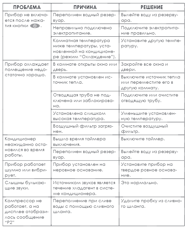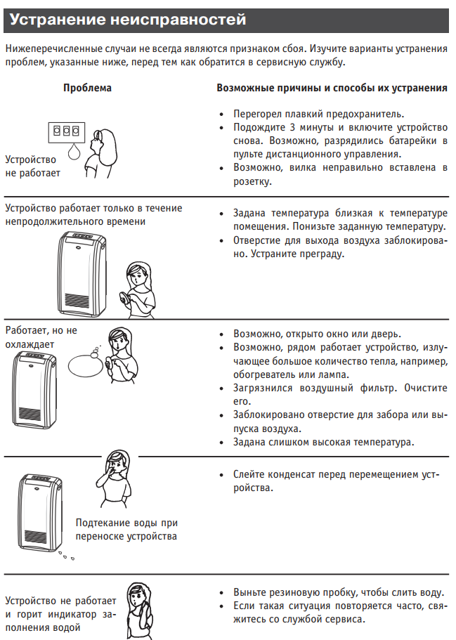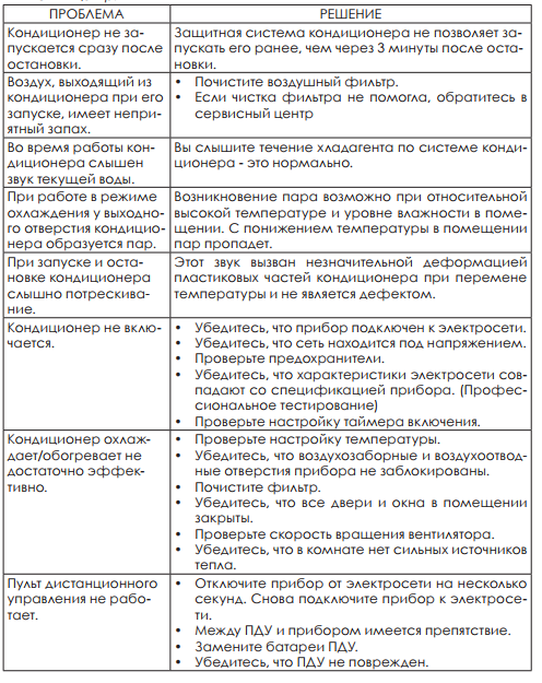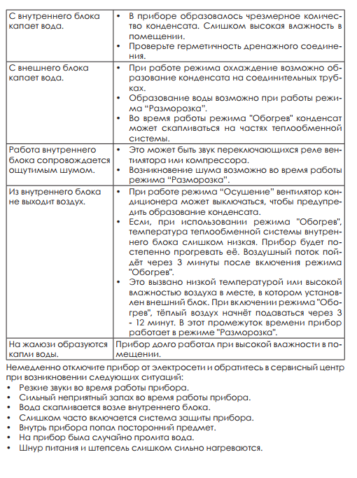 Tous les modèles de climatiseurs produits sous la marque Elenberg sont équipés d'une fonction d'auto-diagnostic. De plus, dans le contenu des instructions jointes, vous pouvez vous familiariser avec une liste de dysfonctionnements possibles avec des solutions pour leur élimination.