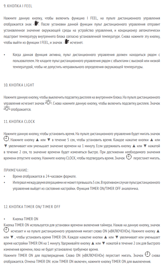 Le mode « I Feel » est destiné lorsqu'il y a peu de monde dans la pièce. Le climatiseur lit les lectures du capteur de température situé dans la télécommande et assure le refroidissement ou le chauffage de la pièce jusqu'à ce que la température réglée dans la zone de la télécommande soit atteinte.