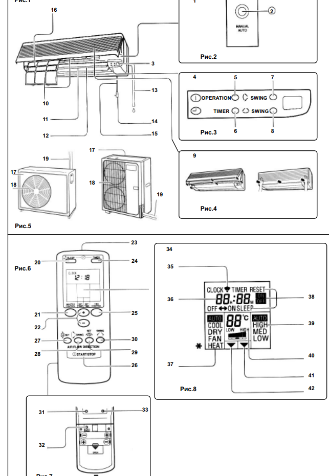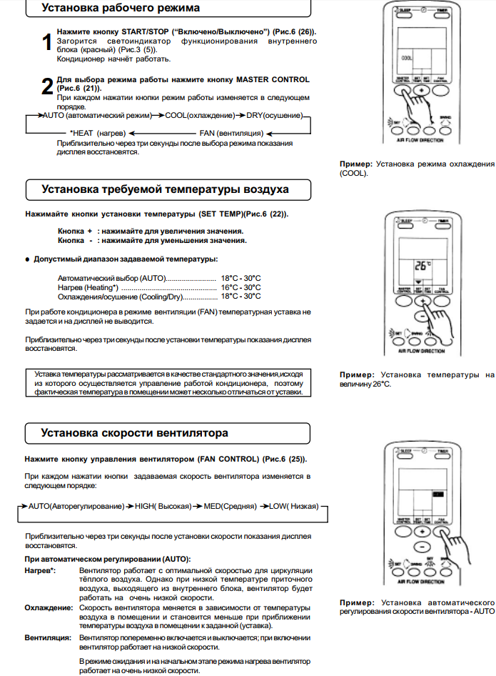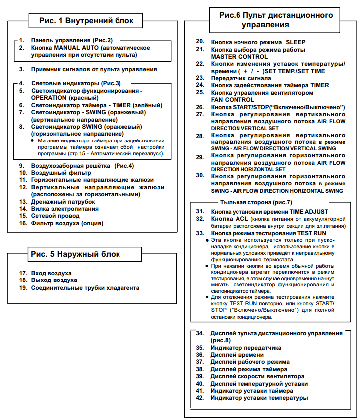 Des instructions détaillées ont été élaborées pour chaque type d'équipement. Une place particulière y est occupée par des recommandations sur la façon d'utiliser correctement la télécommande du climatiseur. L'ensemble complet comprend un appareil standard pour la télécommande. Selon le type d'équipement, il peut être complété par un certain nombre de fonctions spécifiques.