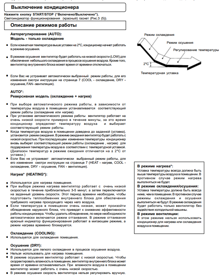 Toute la gamme de produits peut être utilisée à la fois pour le refroidissement et le chauffage. Dans ce dernier cas, il est recommandé de diriger le flux d'air vers la partie inférieure, plus près du sol - ainsi la pièce se réchauffera plus rapidement.
