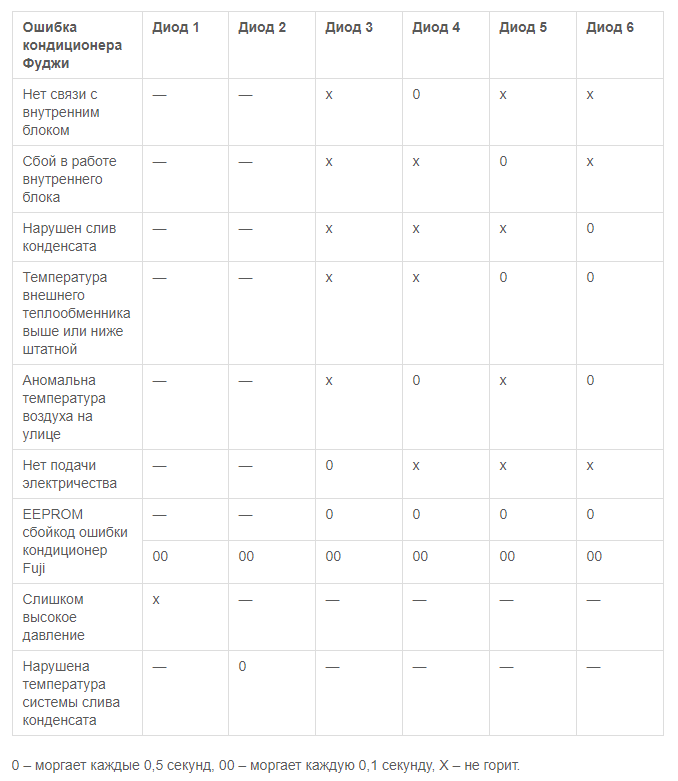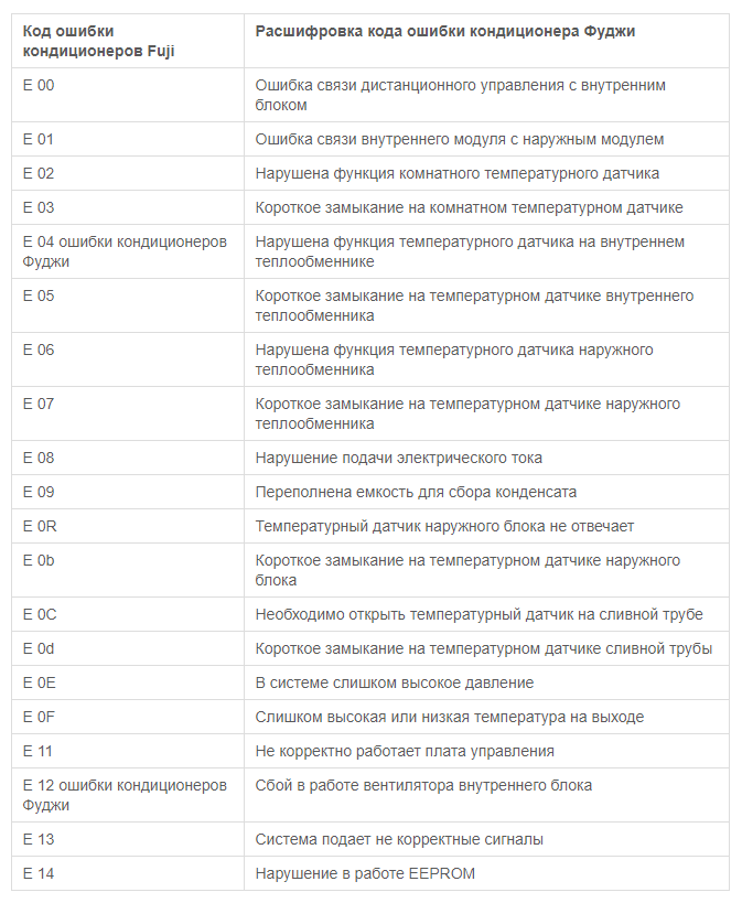 Codes d'erreur du climatiseur Fuji Electric