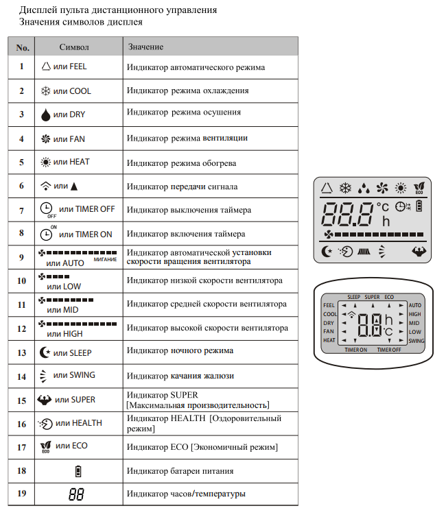 Les codes d'erreur des climatiseurs de cette marque sont un indicateur supplémentaire de mauvais fonctionnement. Ils sont affichés sur l'écran de l'unité intérieure :