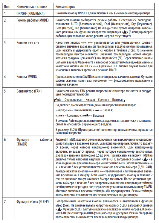 La plage de puissance de refroidissement est de 2250 à 8310 W. Le contrôle est clair, la télécommande possède des icônes de mode qui sont mises en évidence lors de leur activation. Par exemple, lorsque la ventilation est activée, un ventilateur s'affiche.