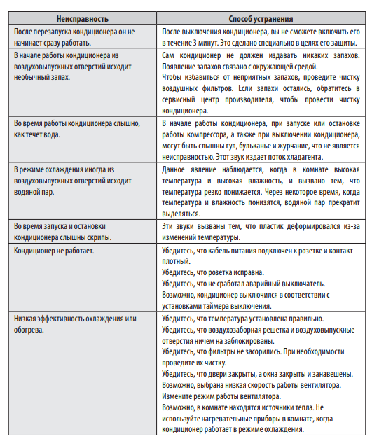 Chaque modèle est accompagné d'une notice détaillée, le climatiseur Fusion, selon laquelle il passe par les étapes d'entretien et, si nécessaire, de réparations. Mais surtout, l'installation correcte doit être effectuée. L'installation correcte du climatiseur doit être effectuée par des spécialistes autorisés à effectuer de tels travaux. Ne pas le faire peut annuler la garantie d'usine.