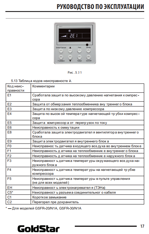 - Codes d'erreur du climatiseur Goldstar