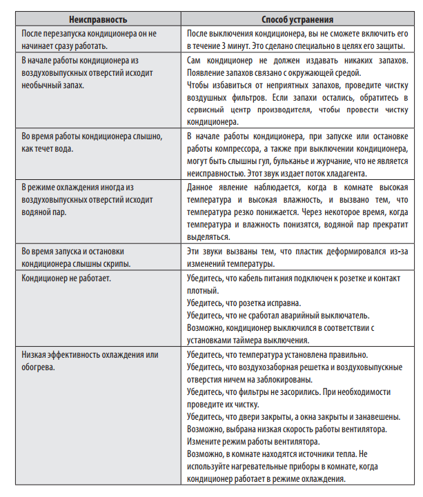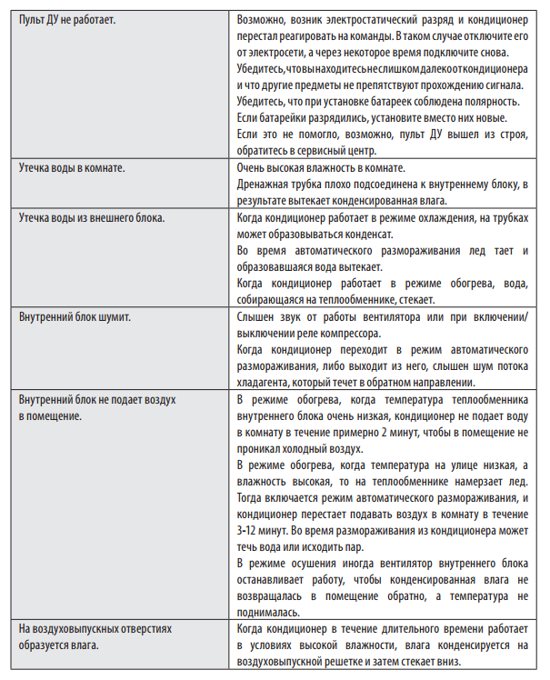 Pendant le fonctionnement, divers codes d'erreur système des climatiseurs peuvent apparaître. Le plus souvent, dans ce cas, la réparation du climatiseur n'est pas requise et l'utilisateur lui-même peut résoudre le problème ou tout dysfonctionnement, mais vous devez d'abord déchiffrer ce code même. Le tableau d'erreurs des instructions du climatiseur peut vous aider.