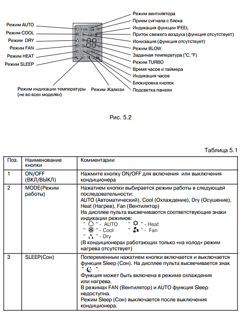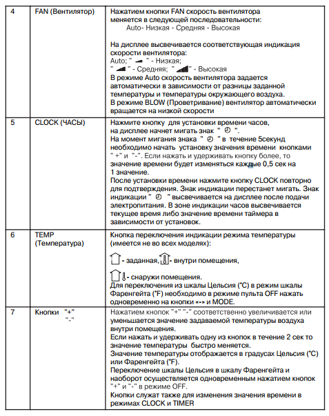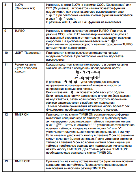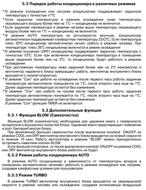 Le manuel des climatiseurs Gree contient une description des modes de fonctionnement d'un produit spécifique et est développé individuellement pour celui-ci. Ceux. pas une instruction universelle pour tous les climatiseurs à la fois.