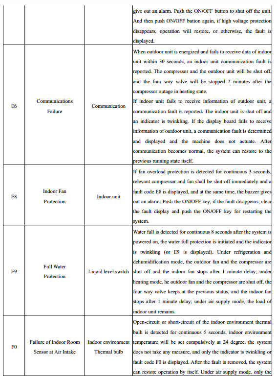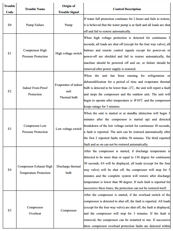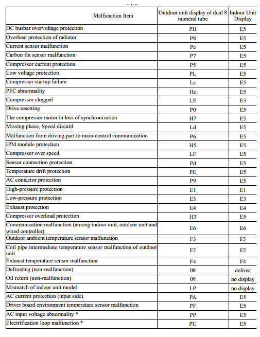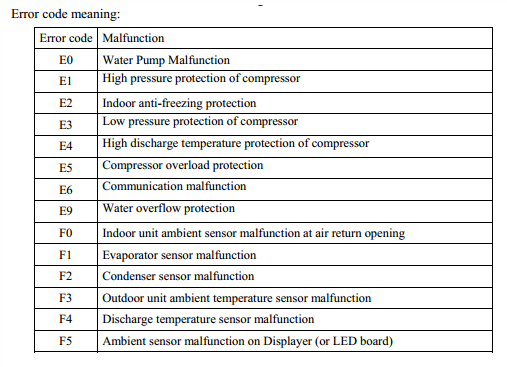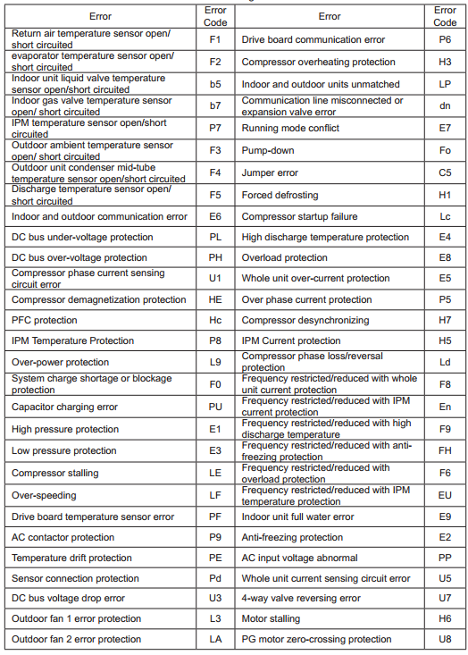 - Codes d'erreur pour les climatiseurs GREE
