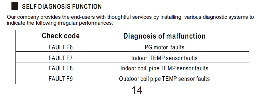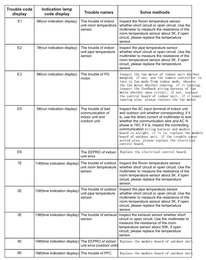 Codes d'erreur pour les climatiseurs VERT