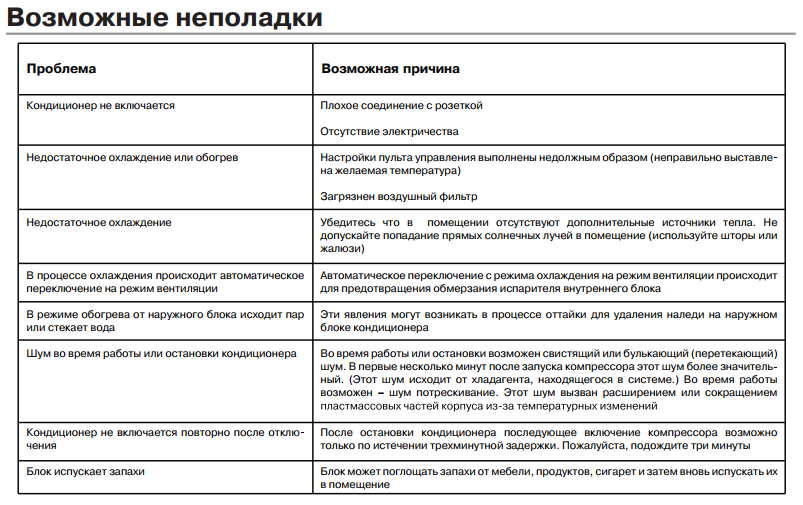 Les instructions qui accompagnent l'installation fournissent une liste d'erreurs et des méthodes pour leur élimination. Ainsi, certains d'entre eux ne signifient que le nettoyage du filtre, et certains - le remplacement de la carte ou de certaines pièces. Dans tous les cas, vous devez contacter le centre de service manuel, où se trouvent toutes les ressources et pièces de rechange nécessaires pour remettre le climatiseur en état de fonctionner, convenir d'un algorithme pour le travail et faire confiance aux professionnels.
