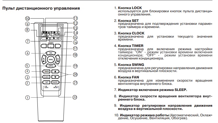 - facilité de choix des modes - refroidissement, chauffage, déshumidification et ventilation;