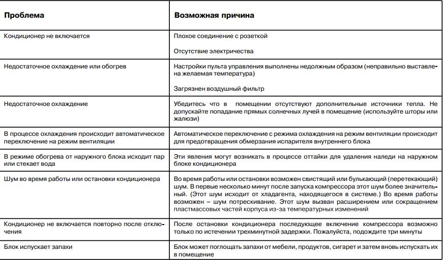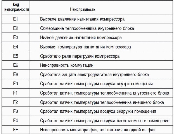 Le principal indicateur d'un dysfonctionnement est le code d'erreur qui s'affiche à l'écran. Sa description détaillée est dans les instructions. Il est important de ne pas essayer de démonter l'unité intérieure vous-même pour le dépannage.
