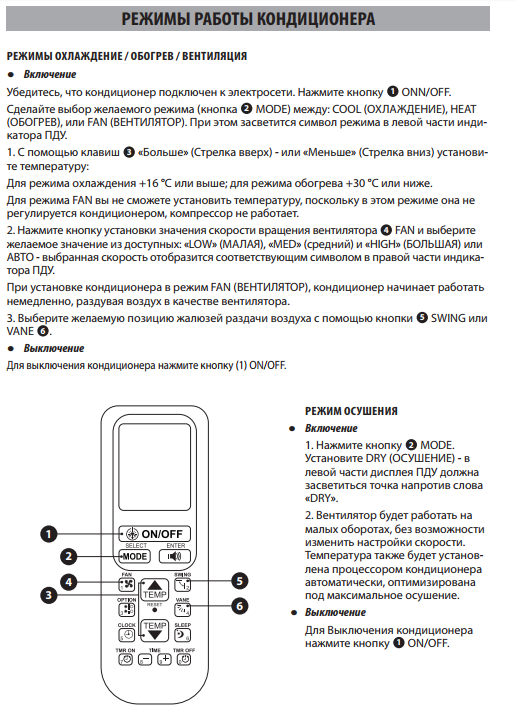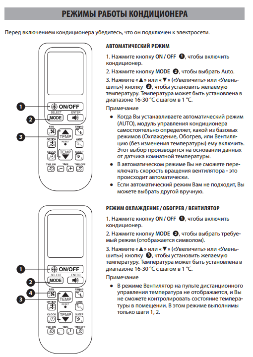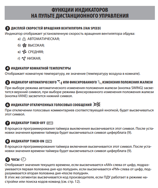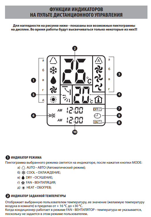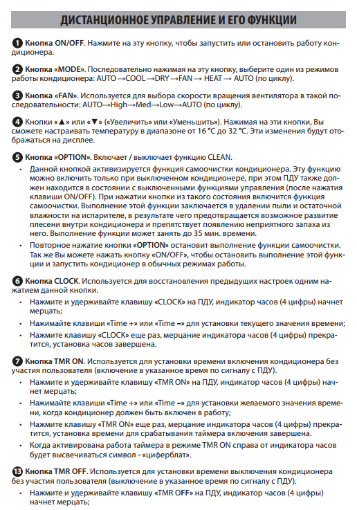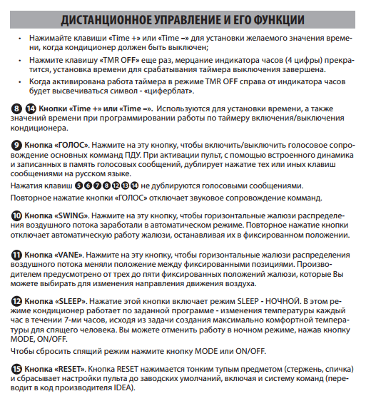 La télécommande du climatiseur est également accompagnée d'un manuel d'utilisation détaillé. Après avoir étudié le contenu de la brochure, vous pouvez utiliser toutes les capacités de l'appareil, en utilisant au maximum toutes les fonctions du produit Idea.