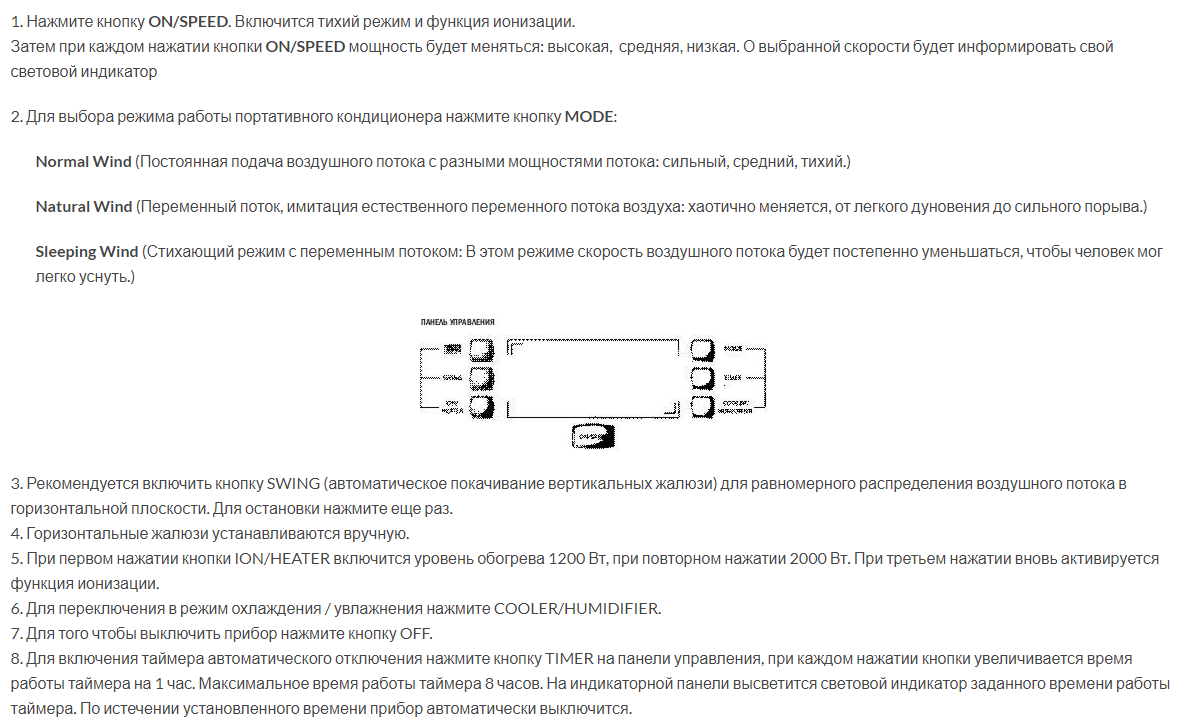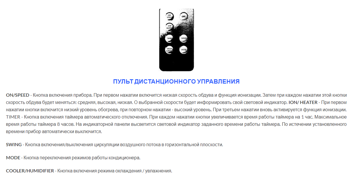 Dans le modèle le plus puissant, un ventilateur tangentiel a été installé, ce qui a eu un effet positif sur la puissance du flux d'air. L'unité avec une unité de taille moyenne a une fonction de chauffage de l'air - jusqu'à 2 kW.