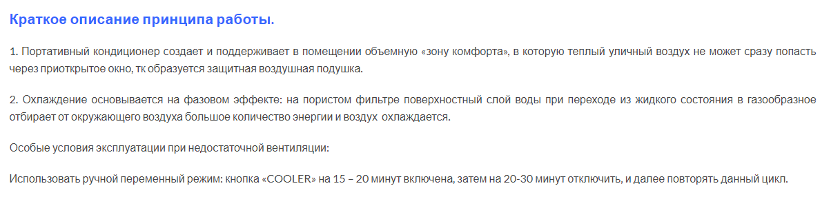 - Faible consommation d'énergie par rapport aux systèmes split classiques ou aux modèles de fenêtres. En moyenne, jusqu'à 200 watts suffisent pour atteindre la puissance de fonctionnement.