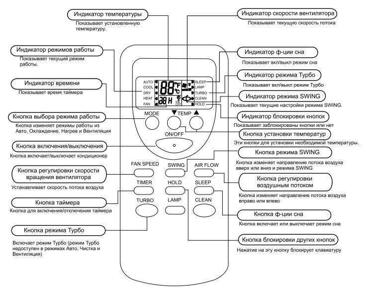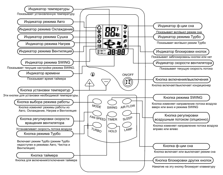 La télécommande du climatiseur vous permet de régler le mode le plus approprié et d'ajuster les paramètres sélectionnés. La notice des climatiseurs comprend toutes les explications des symboles disponibles sur l'unité ou le panneau, et contient également une représentation schématique des méthodes d'installation, la finalité de tel ou tel élément. L'ensemble de produits de marque comprend des coupons de garantie pour le service et la réparation professionnelle du climatiseur au centre de service régional.