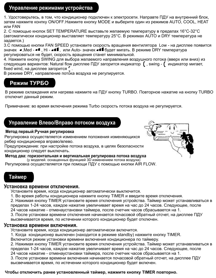 - Mode "Turbo", grâce auquel les locaux seront chauffés en quelques minutes, ce qui est particulièrement important en saison froide.