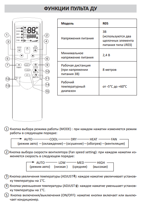 - un mode de veille spécial, les instructions d'utilisation indiquant qu'il réduit non seulement le bruit, mais fonctionne également dans un rythme temporel spécial de maintien de la température de l'air.