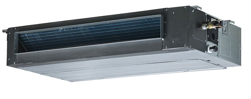 Un climatiseur gainable (système multizone) est conçu pour fournir le climat souhaité à l'intérieur d'un grand bureau comportant plusieurs pièces. Installée au-dessus du faux plafond, la gaine est cachée et l'air est distribué à travers des gaines qui sont acheminées vers les points souhaités. Les appareils de cette classe ont des performances élevées.