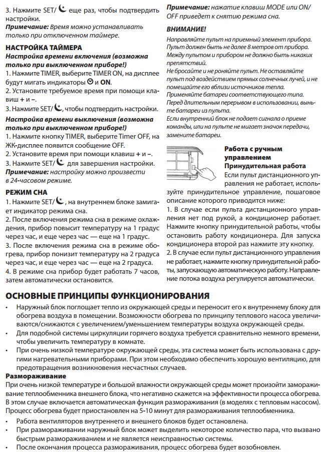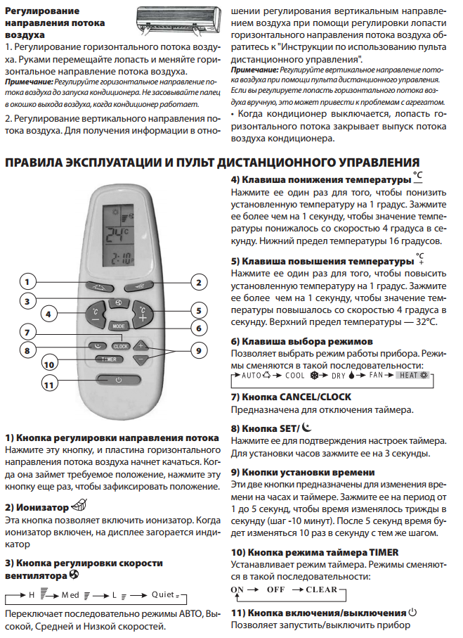 - Grâce au mode nuit, la température de l'air change toutes les heures d'un degré, et après deux heures, elle cesse de changer, après cinq heures de fonctionnement continu, l'équipement s'éteint.