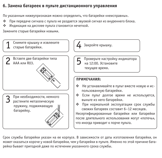 Si le signal de la télécommande à l'unité se passe mal, alors il est temps de remplacer les piles. Il est important de se rappeler que pour un bon fonctionnement à long terme de la télécommande du climatiseur, vous devez choisir uniquement des piles de haute qualité et ne pas confondre leur polarité.