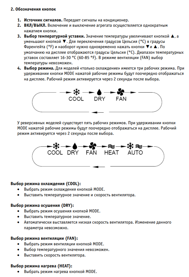 Les instructions pour contrôler le climatiseur depuis la télécommande sont simples et le principe de son utilisation sera clair même pour un enfant :