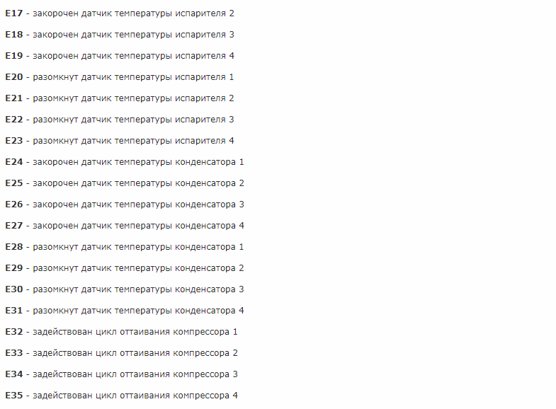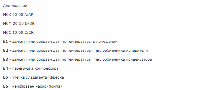 Malheureusement, des dysfonctionnements peuvent encore survenir pendant le fonctionnement. Étant donné que tous les climatiseurs de cette marque disposent d'un système d'autodiagnostic, vous pouvez déterminer ce qui s'est passé. En cas d'erreur, un certain code sera affiché sur l'écran et une ampoule clignotera sur le module lui-même, dans un certain ordre, indiquant également un certain code (selon les modèles, ils peuvent différer).