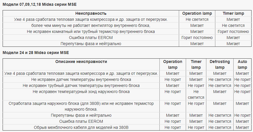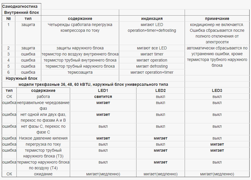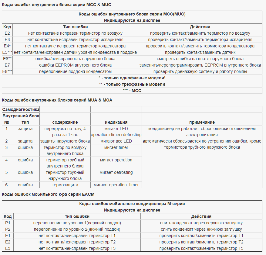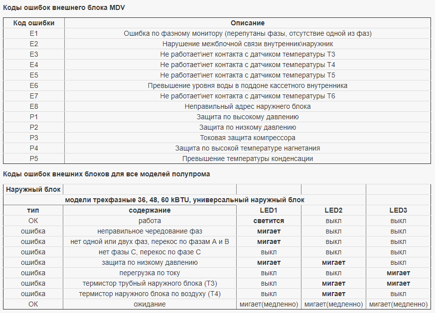 Cette section présente les principales erreurs et leur décodage, qui s'afficheront sur l'unité intérieure du climatiseur lorsqu'elles seront détectées par le système d'autodiagnostic de l'appareil. Les informations sur le dysfonctionnement sont contenues dans le passeport de l'appareil.