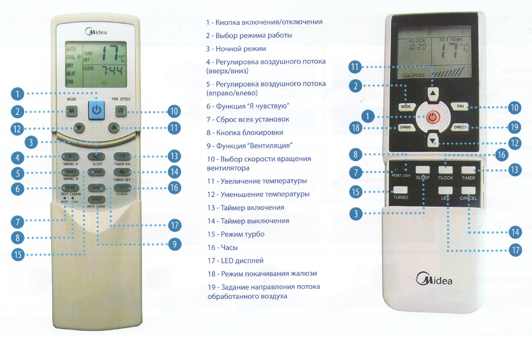 Afin de bien comprendre la fonctionnalité du contrôle du système, une instruction pour les climatiseurs Midea (manuel d'utilisation) a été développée en usine. Il peut être trouvé dans la fourniture de base des équipements de climatisation.