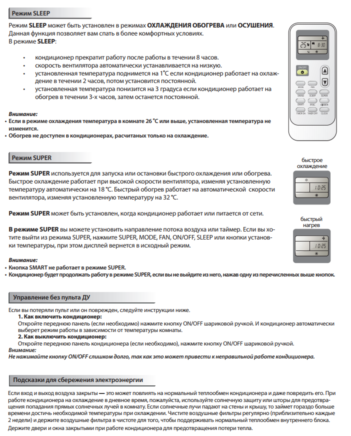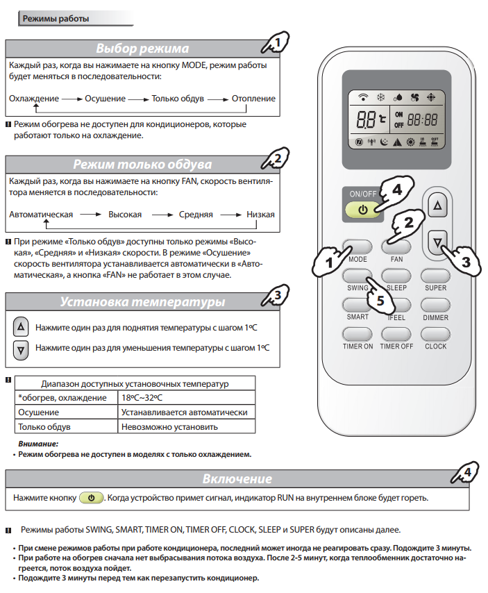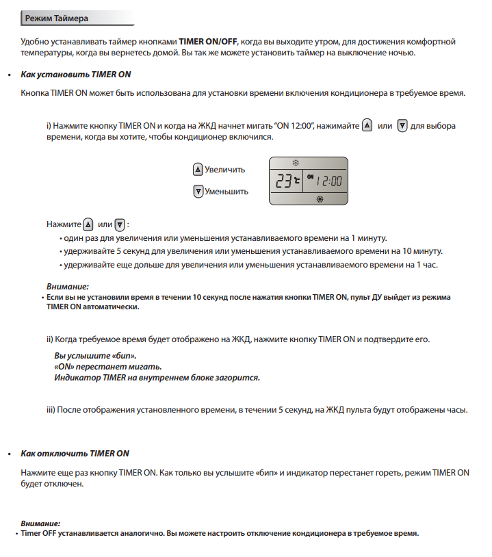 - La présence d'options telles qu'une minuterie et des modes spéciaux qui vous permettent de déterminer à l'avance à quelle heure le climatiseur s'allumera et s'éteindra.