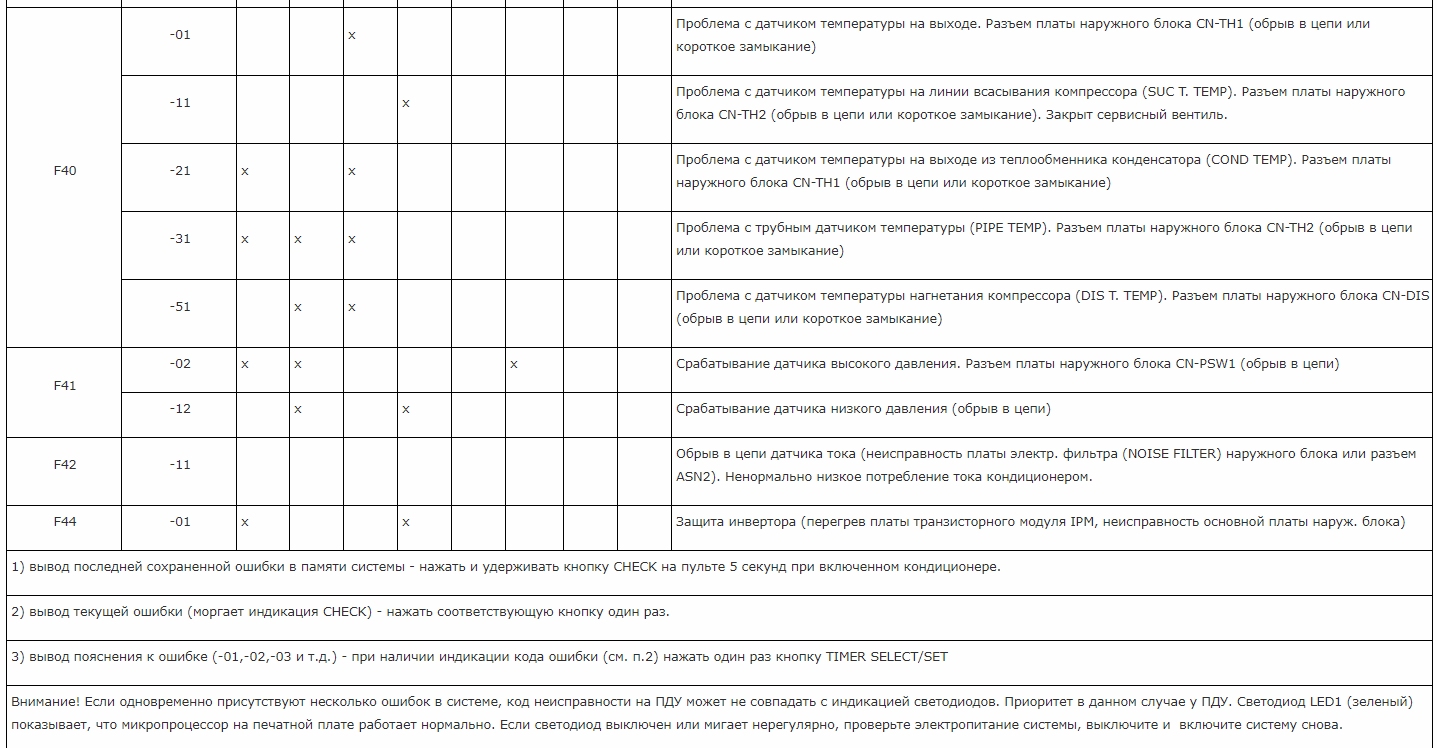 Dans de tels cas, nous vous recommandons de vous familiariser avec le manuel, qui contient les codes des erreurs les plus courantes.