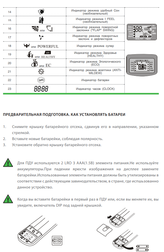 | Caractéristiques supplémentaires | Minuterie, redémarrage automatique, contrôle du débit d'air (direction), auto-diagnostic | Mémorisation du réglage précédent, ventilateur, fonctionnement automatique | Mode nuit, autodiagnostic des dysfonctionnements, présence d'un filtre fin, présence d'un filtre désodorisant |