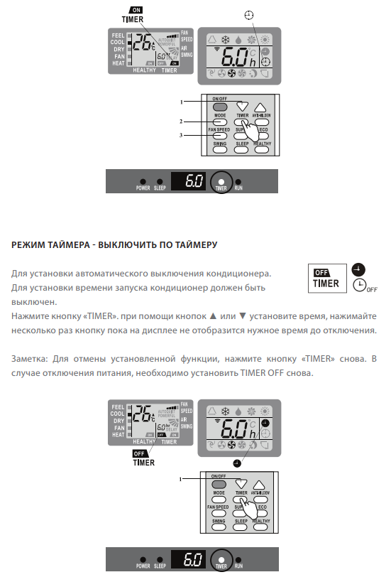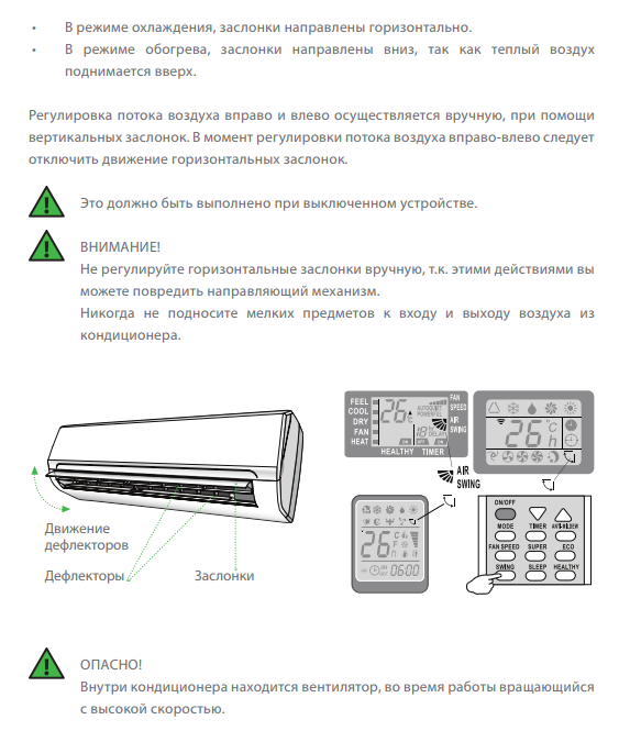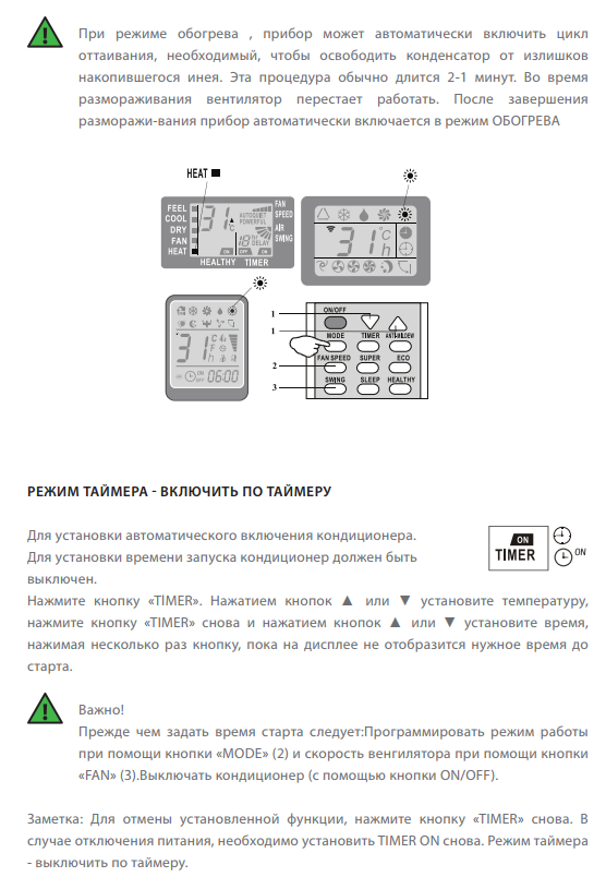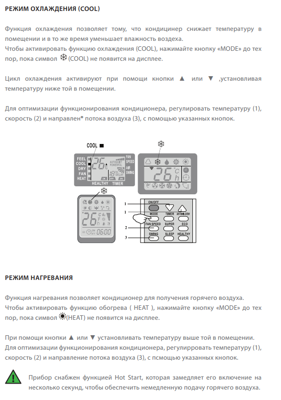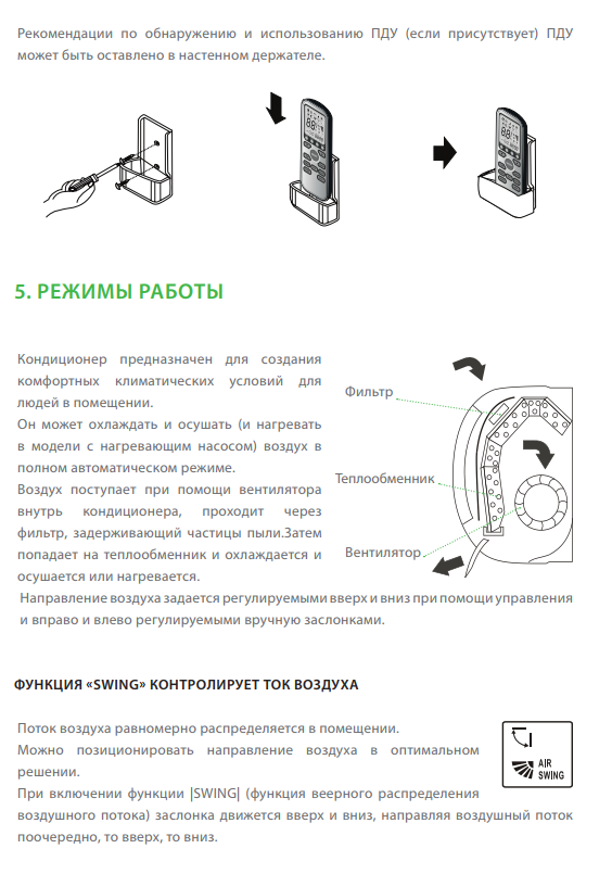 - sélectionnez le mode de fonctionnement approprié du système - chauffage, refroidissement, ventilation (selon le modèle);