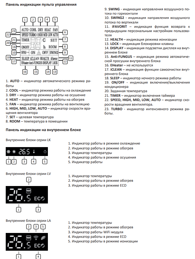 Lors de l'achat de climatiseurs, vérifiez la disponibilité de tous les accessoires et documents, le respect des spécifications indiquées dans le document. L'installation du climatiseur ne doit être effectuée que par une entreprise de service. Il n'est pas recommandé d'effectuer une auto-réparation, de déplacer ou de réinstaller les climatiseurs. Après le montage de la structure, un accès libre au câble d'alimentation et à la prise du produit doit être prévu. La prise électrique ne doit pas se trouver à plus de 1,5 mètre de l'unité intérieure de l'appareil. Comment installer l'appareil et les instructions pour le panneau de commande, voir ci-dessous.