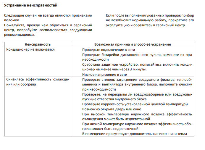 Pour éviter les dysfonctionnements, vous devez connaître les règles de base pour l'utilisation des climatiseurs. Premièrement : assurez-vous de suivre la maintenance de l'appareil, envoyez-le pour diagnostic au moins une fois par an. Les appareils Rovex disposent d'un puissant système d'autodiagnostic ; en cas de dysfonctionnement, il émet immédiatement une erreur de code. Considérez les codes d'erreur des climatiseurs rencontrés.