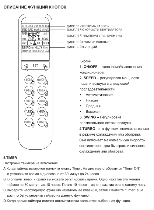 Toutes les informations détaillées sur les caractéristiques techniques se trouvent dans la notice du climatiseur Sakata. Le manuel contient généralement des informations complètes sur la télécommande du climatiseur, sur quelle touche est responsable de quoi, quelles fonctions sont présentes, ainsi que sur la manière de contrôler correctement le système split.