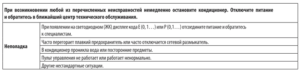 Le manuel contient également une description de divers dysfonctionnements du climatiseur, comment ils peuvent se produire et comment les déterminer. De plus, des codes d'erreur y sont indiqués.