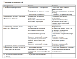 La climatisation complète n'est possible que si l'appareil est pleinement fonctionnel. De plus, l'unité principale et le mécanisme de la console doivent être réparables. Si vous utilisez un système divisé conformément aux exigences de fonctionnement, les pannes ne se produisent pas souvent. Ainsi, vous ne devez utiliser le climatiseur que dans une certaine plage de température - vous n'avez pas besoin d'allumer le chauffage si les lectures de température sont fortement négatives. Un travail excessif signifie une panne inévitable. Cette condition est obligatoire pour presque tous les modèles de systèmes split.