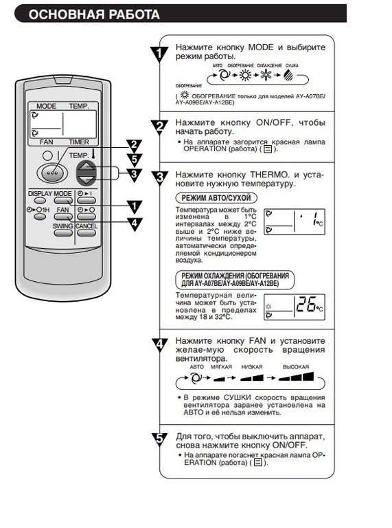 Toutes les séries, y compris les modèles A9KR, ont une classe d'efficacité énergétique « A ». Il est possible de changer le mode de fonctionnement sans télécommande. Pour ce faire, il est nécessaire de changer de mode sur le panneau de l'unité intérieure.