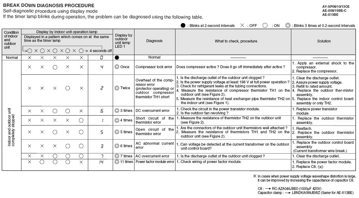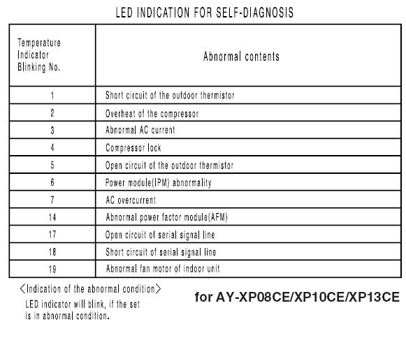 Codes d'erreur de climatiseur pointus