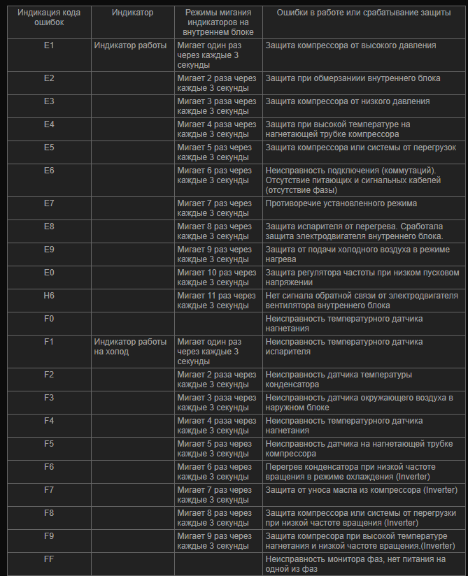 - Après 1,5 an de fonctionnement (le service de garantie est de 1 an), le climatiseur installé a donné une erreur et a complètement cessé de fonctionner, tandis que dans le centre de service, ils ont simplement haussé les épaules et déclaré que la réparation du climatiseur était impossible.