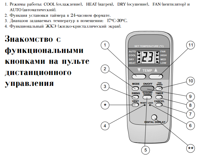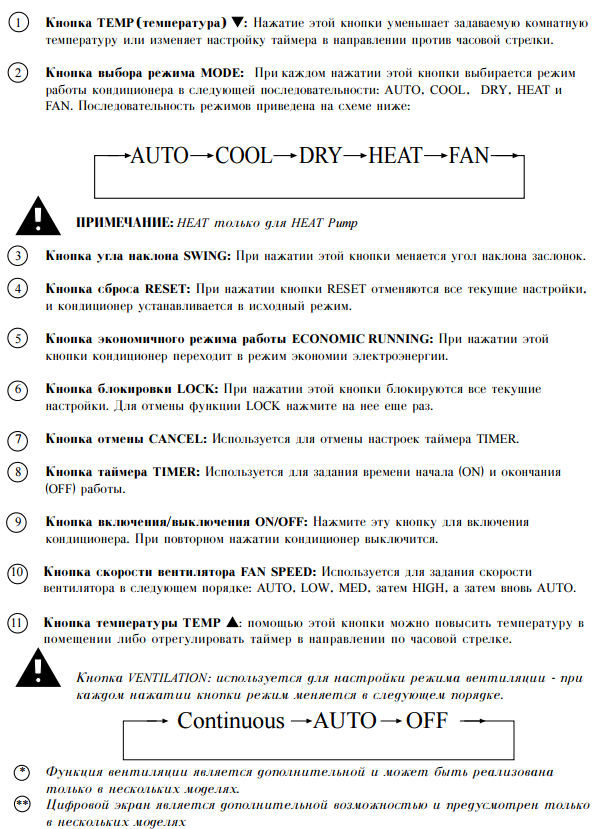 Instructions du panneau de commande du climatiseur Tadiran