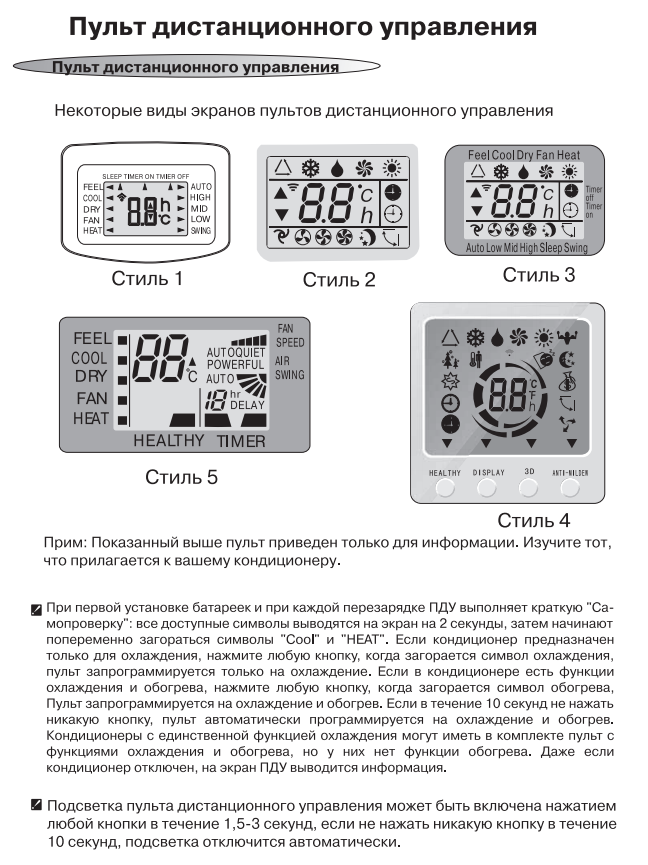 Il existe un manuel d'instructions pour le climatiseur pour chaque type, modèle et gamme de produits. En règle générale, une instruction est identique pour toute la ligne et la série, et donc souvent dans le manuel, vous pouvez trouver des "écarts exclus" en ce qui concerne les différences entre la gamme.