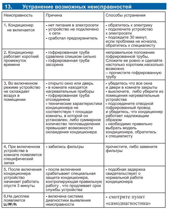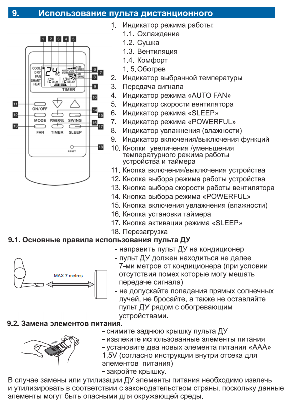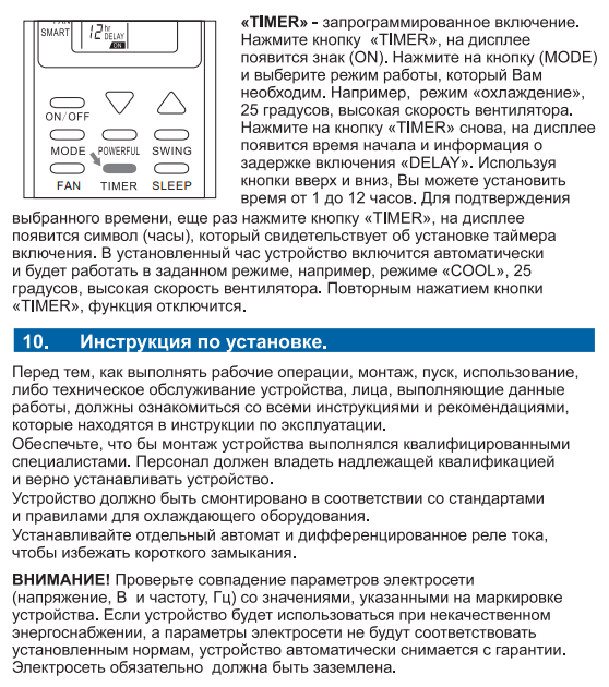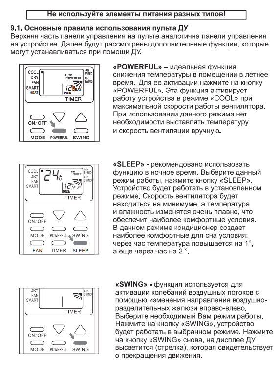 L'ensemble d'équipement comprend des instructions pour les climatiseurs. Les appareils n'ont pas d'automatisation sophistiquée. Même le mode maintien de la température est absent. L'appareil s'adapte à la puissance frigorifique et ne contrôle pas la température ambiante.