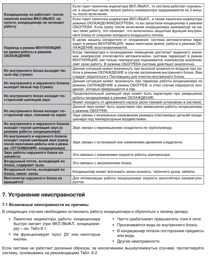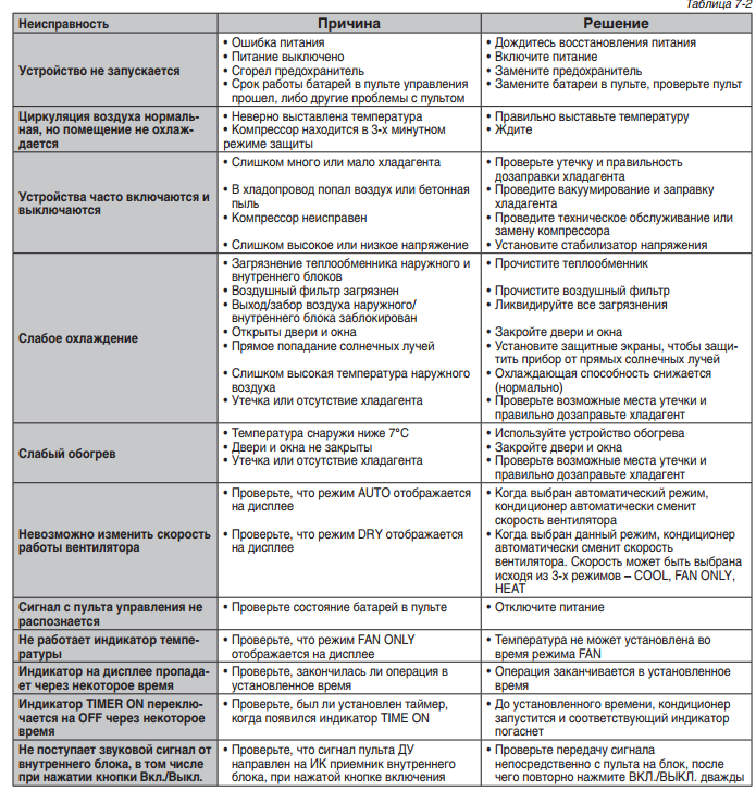 La technique se distingue par sa résistance aux facteurs négatifs - les pannes sont rares. Cependant, une manipulation imprudente, des pannes de courant ou un travail à des températures glaciales peuvent entraîner un dysfonctionnement du système. Les systèmes split modernes sont équipés d'une fonction d'autodiagnostic. Ainsi, lorsque le système détecte une erreur de fonctionnement, son code s'affiche immédiatement à l'écran.