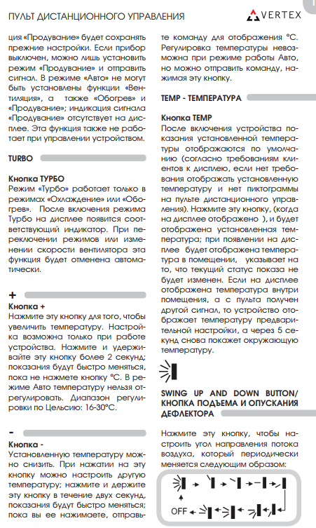 - Vertex Triton 12 - monté au mur, la distance maximale possible jusqu'à l'unité extérieure est de 15 mètres. Modes de refroidissement, de chauffage et de ventilation. Déshumidification de l'air. Autodiagnostic des dysfonctionnements. Les systèmes de partage de sommets les plus simples et les moins chers.