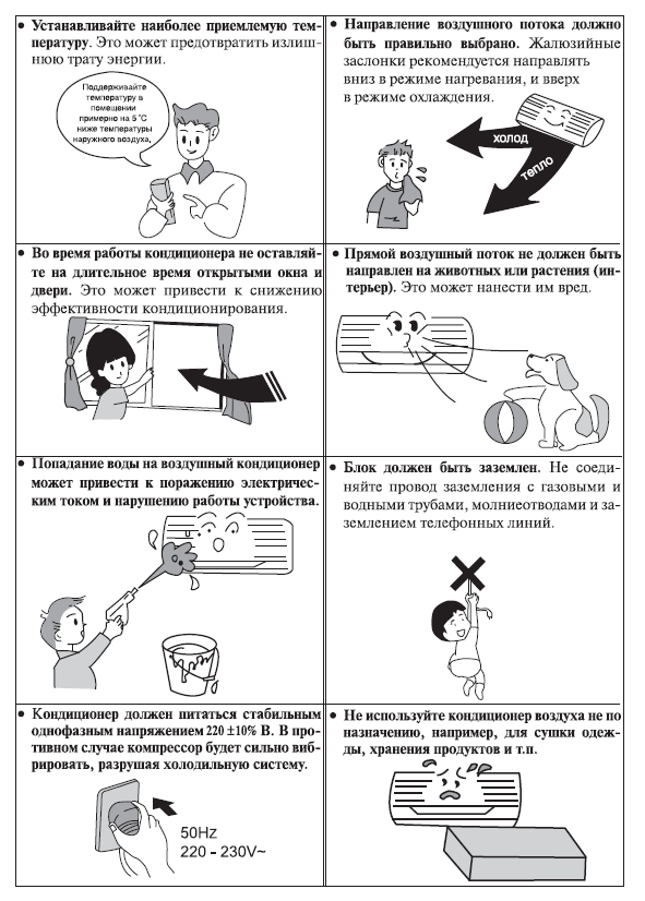 - n'utilisez pas le climatiseur à des températures de l'air négatives (inférieures à -12 ° C).
