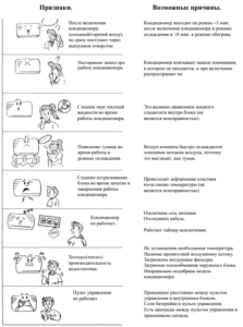 Presque tous les modèles de systèmes split sont équipés d'une fonction d'autodiagnostic conçue pour détecter et déterminer le dysfonctionnement qui s'est produit. Les codes d'erreur qui apparaissent sur l'écran de la structure indiquent exactement ce qui a causé la panne (défaillance). C'est généralement :
