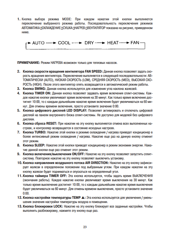 - Balayage d'air - inclusion d'un mode de température spécial pour la ventilation.